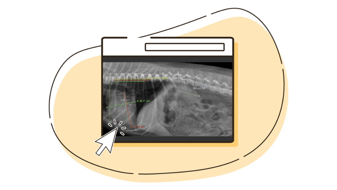 画像上で計測するだけでVHS(椎骨心スコア)、VLAS(椎骨左心房スコア)、kindney-to-L2比が自動計算されます。